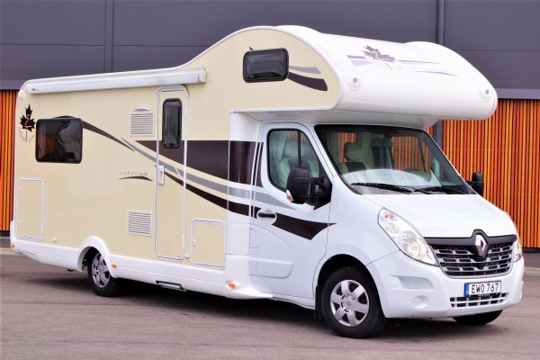 Låga skatten på endast 6577:- fördelat på 3 betalningsterminer. Nya Renault Euro 6 motorn på 130hk och 6 växlad manuell låda för låga varvtal=låg bränsleförbrukning. Långbäddar bak med möjlighet att bädda ner mittsektionen för 3 personer samt Alkov för 2 och bäddbar dinette för 1 ger totalt 6 bäddar och 5 bältade platser.