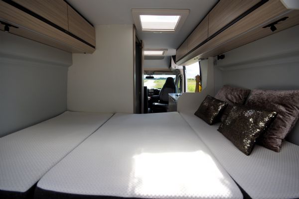 Körs även på vanligt B-kort oavsett när man tagit körkort då totalvikten ej överstiger 3500kg. Breda sängar bak där man får plats 2 personer samt 4 bältade platser. Den ena sängskivan går enkelt att lyfta upp och man får på så sett ett rejält lastutrymme alt garage istället. Reservhjul. Alugasflaska med utvändig möjlighet till gasolfyllning. california