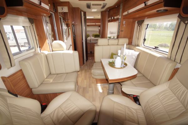 2x AC. Bodels Ac från Dometic & bil/passagerar Ac fram.Exklusiv creme färgad läderklädsel i bilen.Dubbel glas i bodelen.Queens bed bak som enkelt kan ändras till 2st långbäddar + taksäng fram samt bäddbar dinette ger 5 bädd platser.2st garderober med utdragbara kläd hängare på vardera sida sängen.